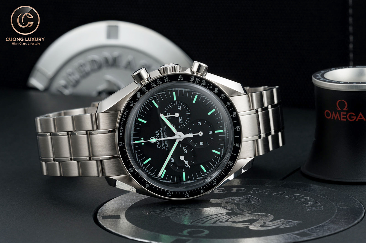 Mặc dù có rất nhiều model Speedmaster khác nhau có trong danh mục đồng hồ Omega, nhưng các mẫu Speedmaster Professional là hậu duệ trực tiếp của những chiếc Moonwatch ban đầu. Đây là những chiếc đồng hồ cao cấp dành cho nam giới có đặc trưng là bộ vỏ thép trong kích thước 42mm, mặt số màu đen có 3 ô số phụ, vành bezel đen cùng thang đo tachymeter và bộ máy lên cót tay.