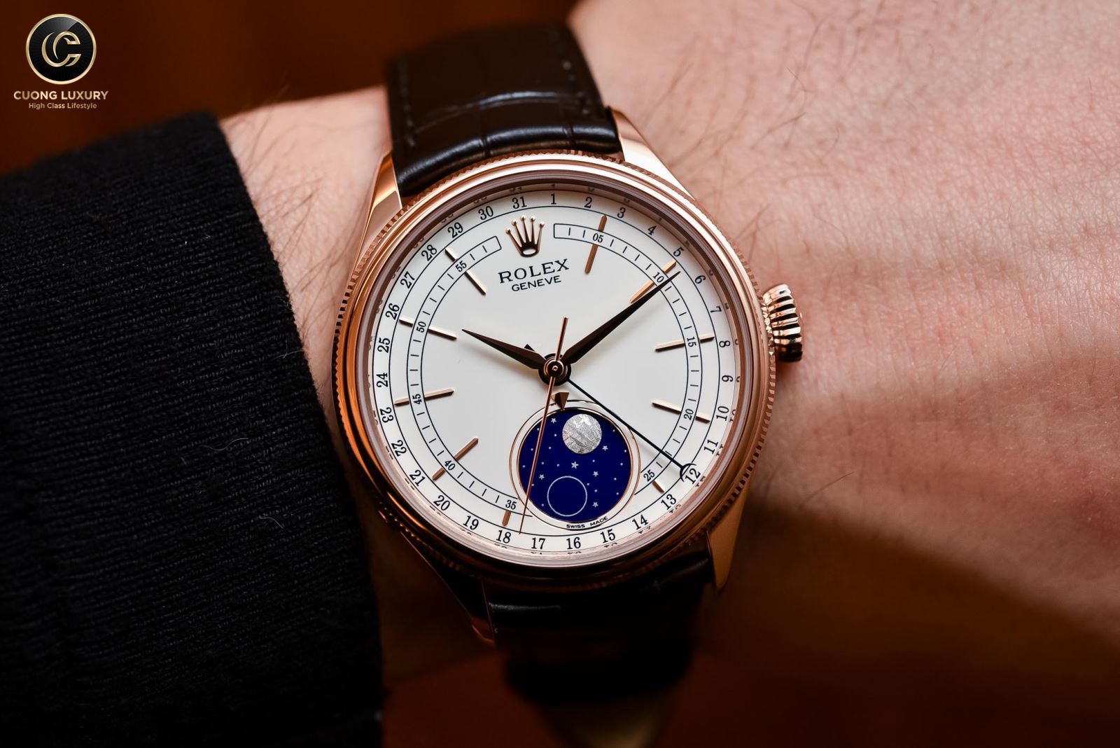 Chức năng Moonphase tái tạo lại gần như chính xác quá trình này. Tùy theo mỗi thương hiệu chức năng lịch tuần trăng sẽ có những thiết kế đa dạng khác nhau. Nó không chỉ giúp ích trong việc xem lịch âm mà còn đem đến cho đồng hồ một vẻ đẹp cực kỳ thanh lịch và ấn tượng.
