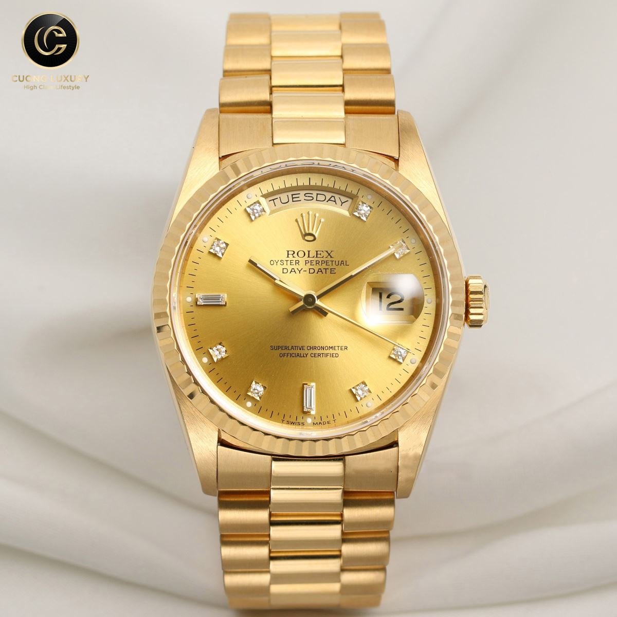 Có lẽ nó sẽ còn phụ thuộc rất nhiều vào quan điểm của mỗi người. Nhưng nếu bạn cũng đang có trong mình niềm đam mê mãnh liệt với những chiếc Rolex Day-Date, đồng thời sẵn sàng chi trả khoảng 300 triệu cho niềm đam mê của mình. Thì đừng ngần ngại đến ngay với Cuong Luxury để tận tay trải nghiệm cũng như sở hữu chiếc Rolex Day-Date Ref.18238 bạn nhé.