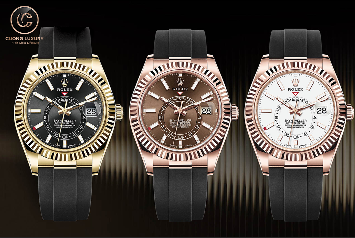 Dây Oysterflex kết hợp với vành bezel Cerachrom đã giúp cho chiếc đồng hồ thay đổi phong cách mới lạ, có tính thẩm mỹ cao nhưng vẫn vô cùng sang trọng, đem lại sự cá tính cho người mang. Ngoài có dây Oysterflex, Rolex Sky Dweller còn có cải tiến bằng những mẫu vàng vàng và vàng Everose mới. Đặc biệt, mẫu Everose có mặt số màu trắng kết hợp mạ Rhodium đậm hoặc có màu socola.