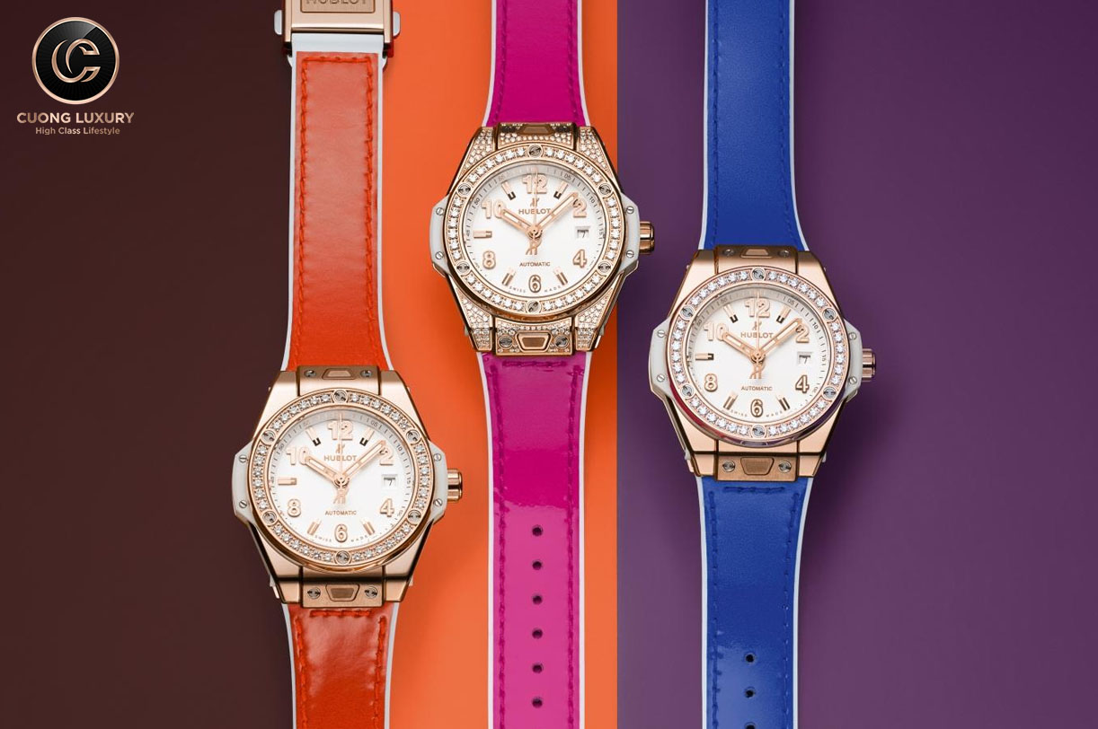 Một trong những thiết kế mới đáng chú ý nhất được Hublot công bố trong năm nay là phiên bản Hublot Big Bang One Click với kích thước 33mm dành riêng cho nữ giới.Về tổng thể chung, không có bất cứ thay đổi nào về thiết kế ngoại trừ kích thước. Tuy nhiên, phần đặc biệt nhất của mẫu đồng hồ này còn đến từ những tùy chọn dây đeo hết sức đa dạng kèm theo. Nó phù hợp để các quý cô có thể thỏa thích thay đổi và phối chiếc đồng hồ với những bộ trang phục khác nhau của mình.