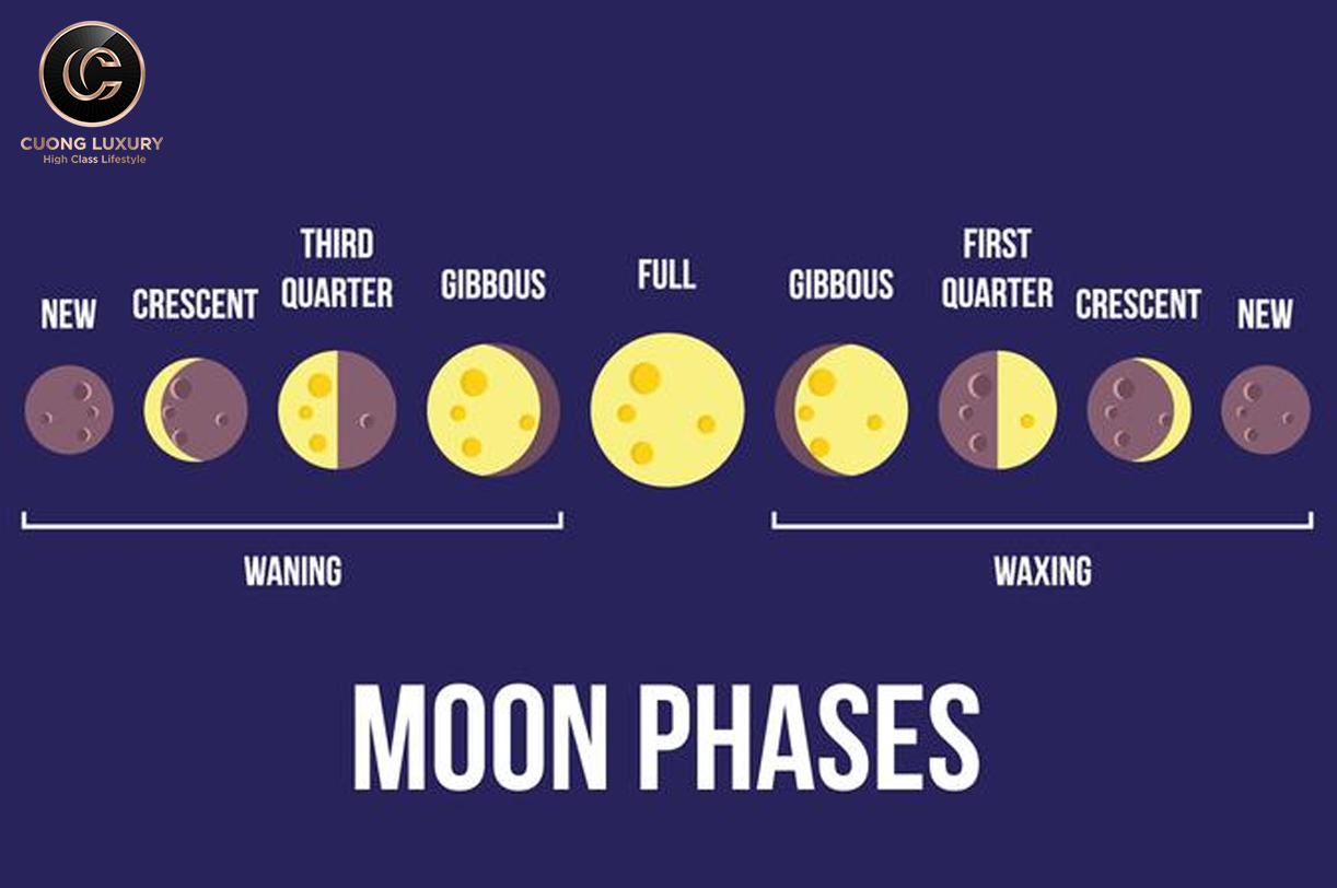 Có tổng cộng 8 pha mặt trăng trong một chu kỳ quay, bao gồm: